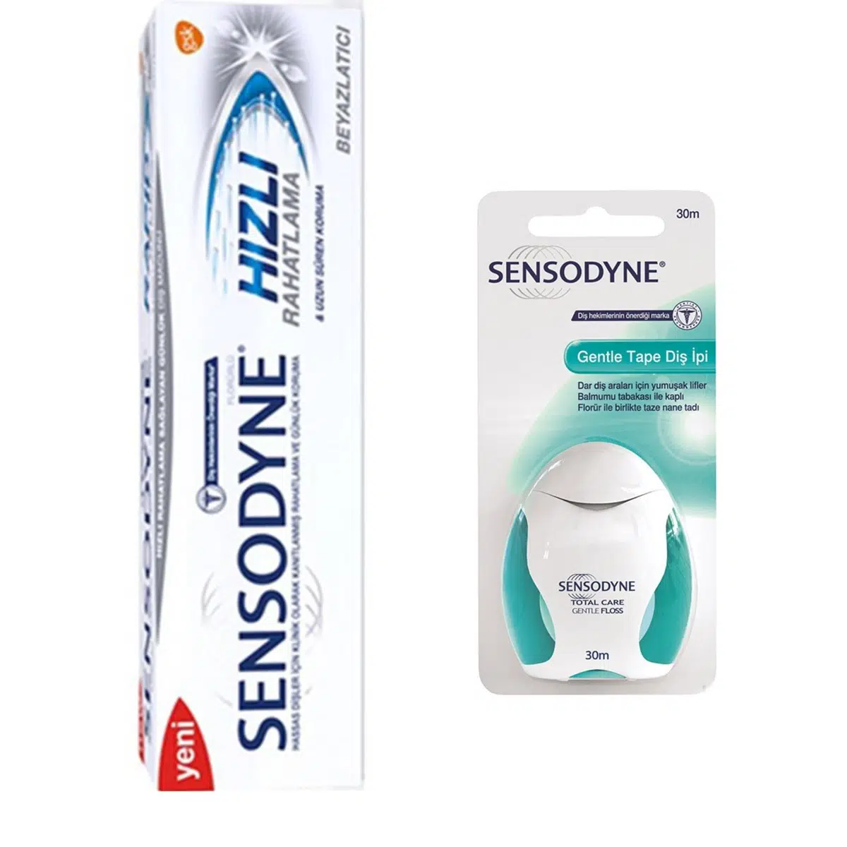 Sensodyne Diş İpi Gentle Tape+Sensodyne Hızlı Rahatlama Beyazlatıcı 75ml Diş Macunu