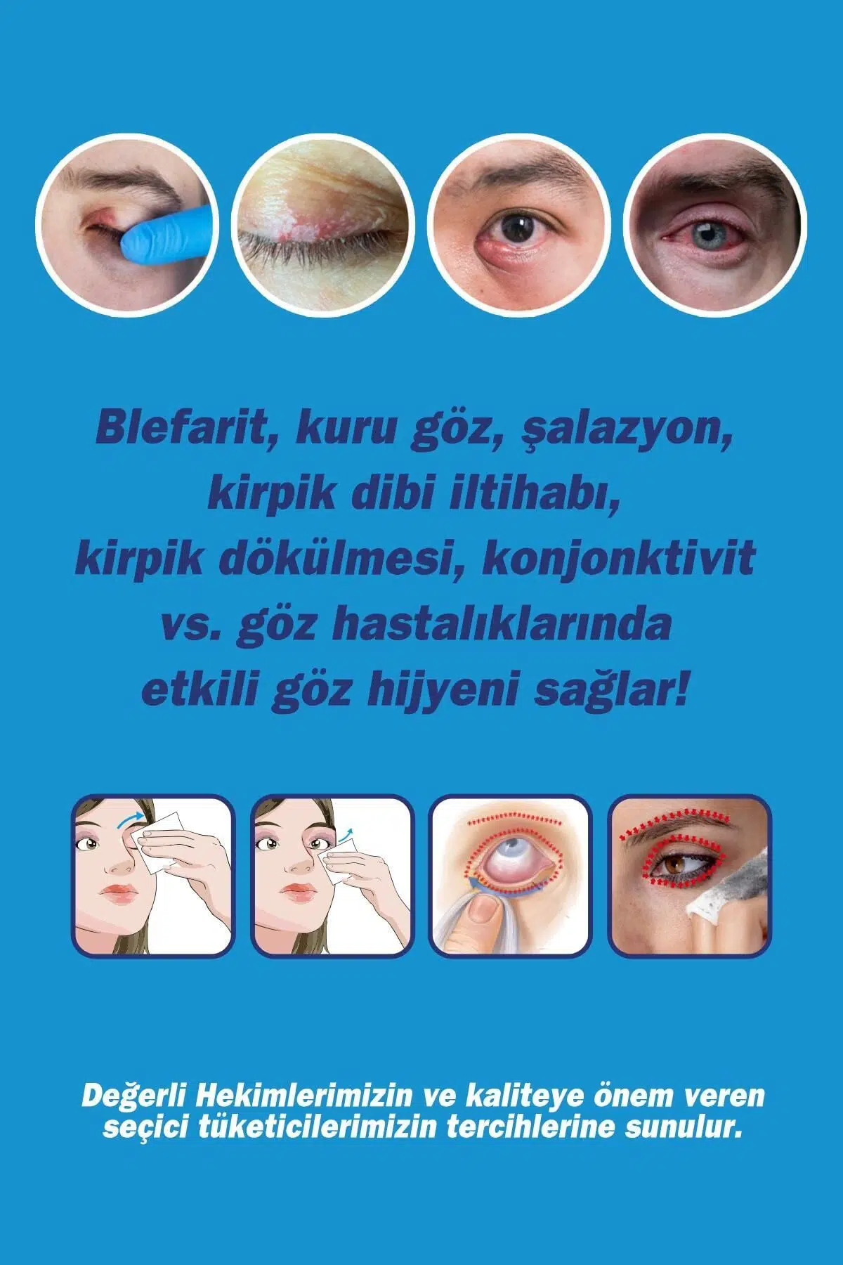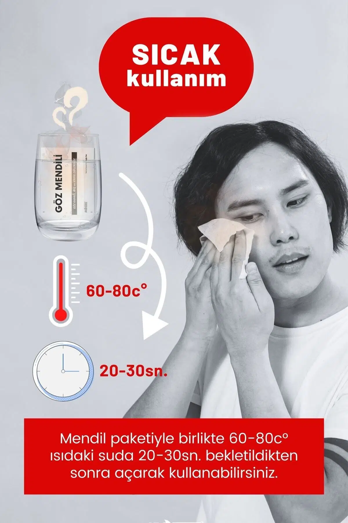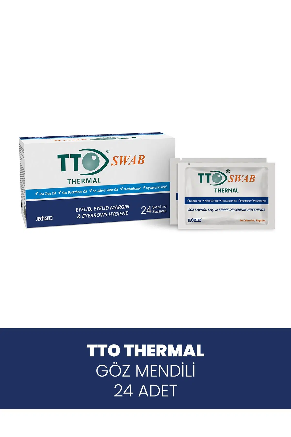 AÇIKLAMALAR: Göz çevresi, kaş ve kirpik diplerinin temizliği için özel olarak üretilmiştir. İçeriğindeki Tea Tree Oil (Melaleuca Alternifolia Leaf Oil ) ve Jeotermal Suya ilave olarak papatya yağı ( chamomilla recutita ) ile etkisi güçlendirilmiştir. Panthenol ile bölgede ekstra nemlilik sağlamaya yardımcı olur. Durulama gerektirmez. Tek kullanımlık, pratik ve güvenlidir. KULLANIM ŞEKLİ: TTO Swab Mendil; Göz çevresi, göz kapağı, kaş ve kirpik dipleri gibi hassas bölgelere masaj yapılarak uygulanır. Her iki göze farklı mendil kullanılmalıdır.